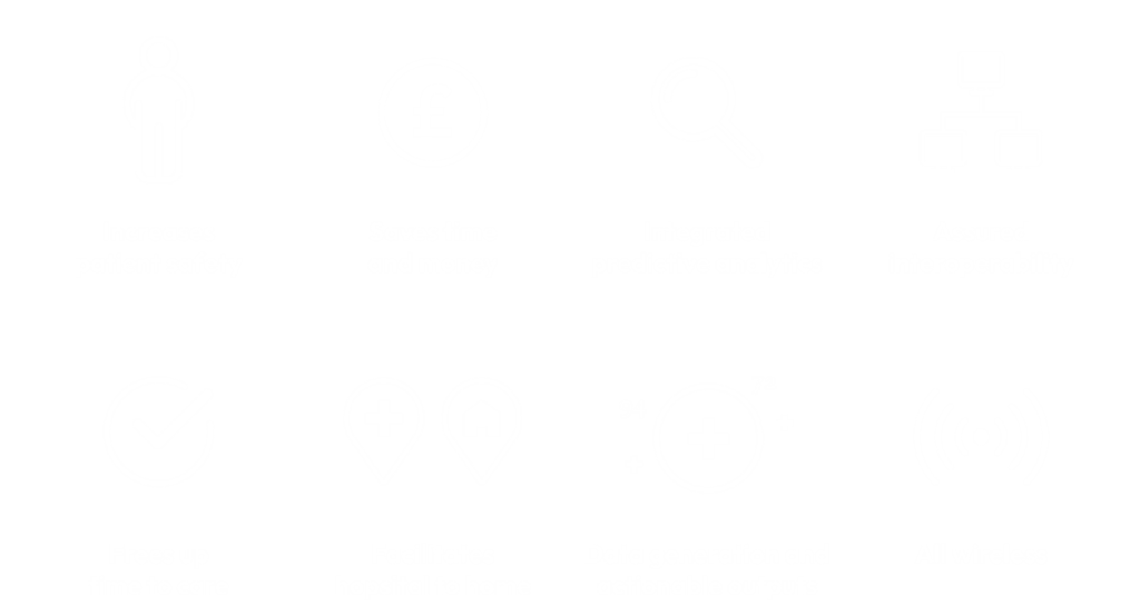 By automating the basic process of taking patient observations and calculating accurate real-time predictive indicators of patient status, the Patient Status Engine addresses clinician and nurse shortages though unprecedented in-ward efficiency gains. Additionally it offers the ability to provide higher acuity care in lower cost areas including general wards and patients’ homes.